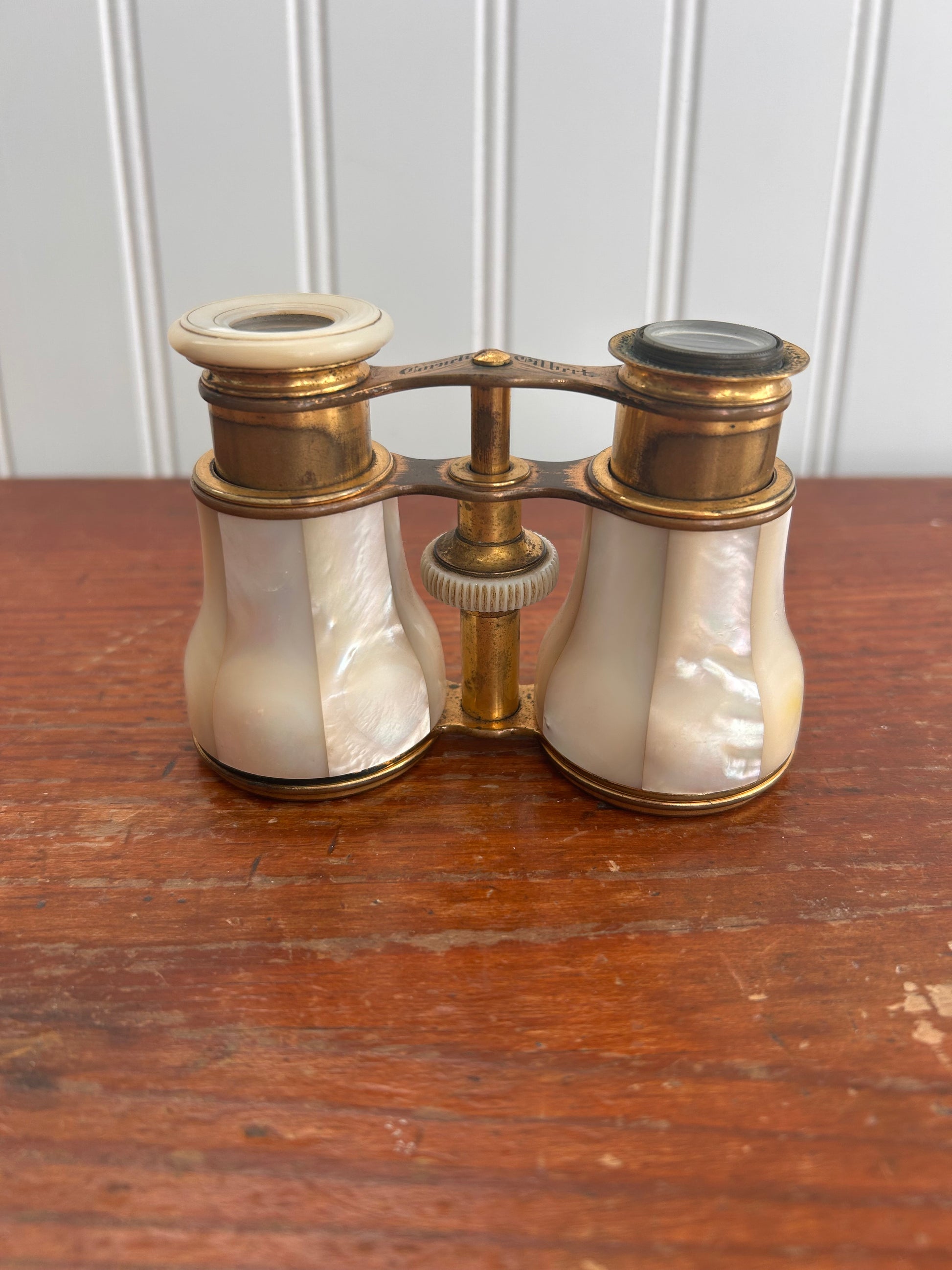 Crafted in warm brass with luminous mother-of-pearl barrels, this Victorian-era piece carries the quiet elegance of a bygone evening at the theater. The engraved date suggests a moment worth remembering — a celebration, a gift, or a night that mattered enough to be permanently etched into brass.