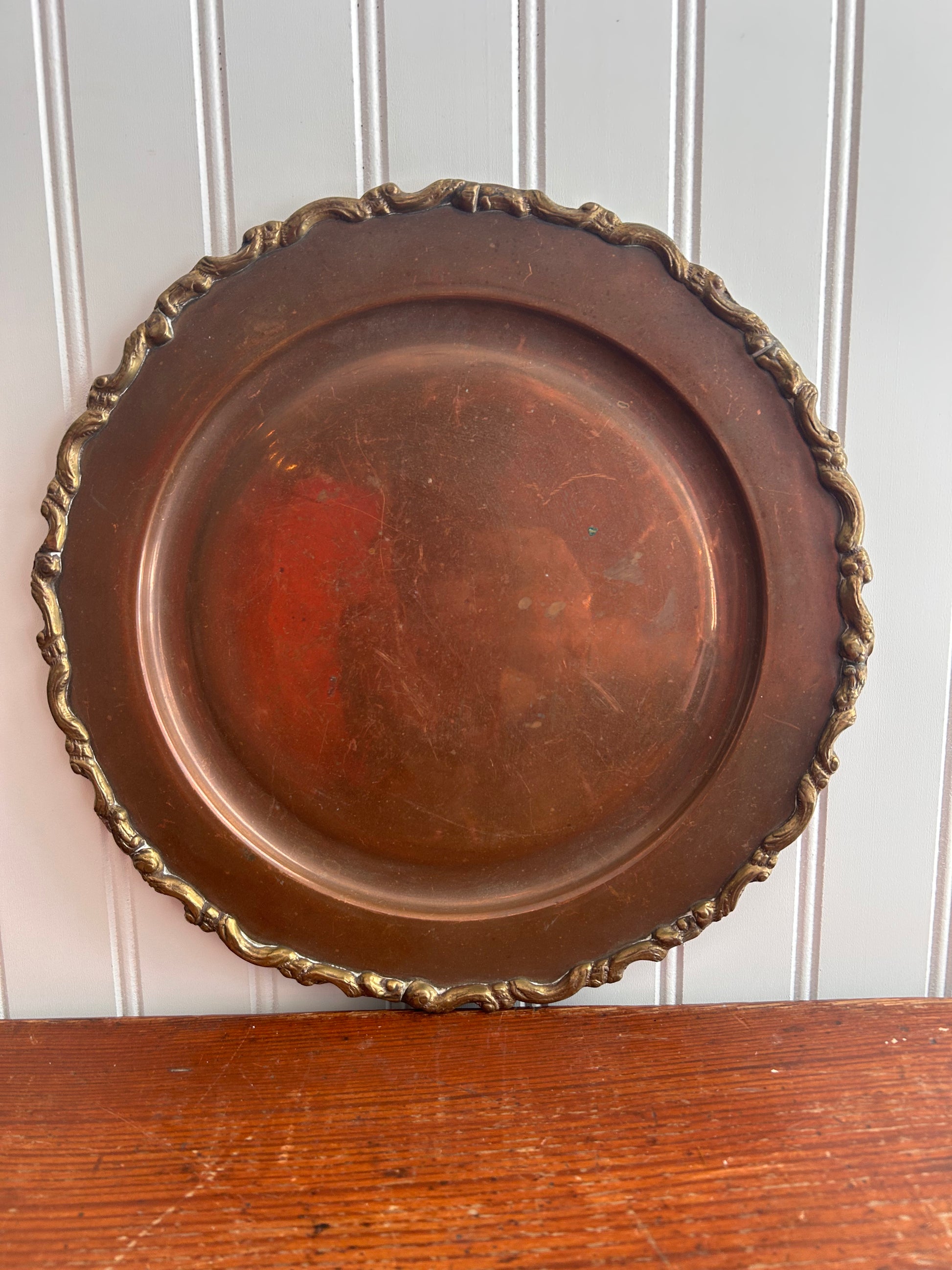 Vintage Copper Accent Plate with Ornate Brass Rim – 11”